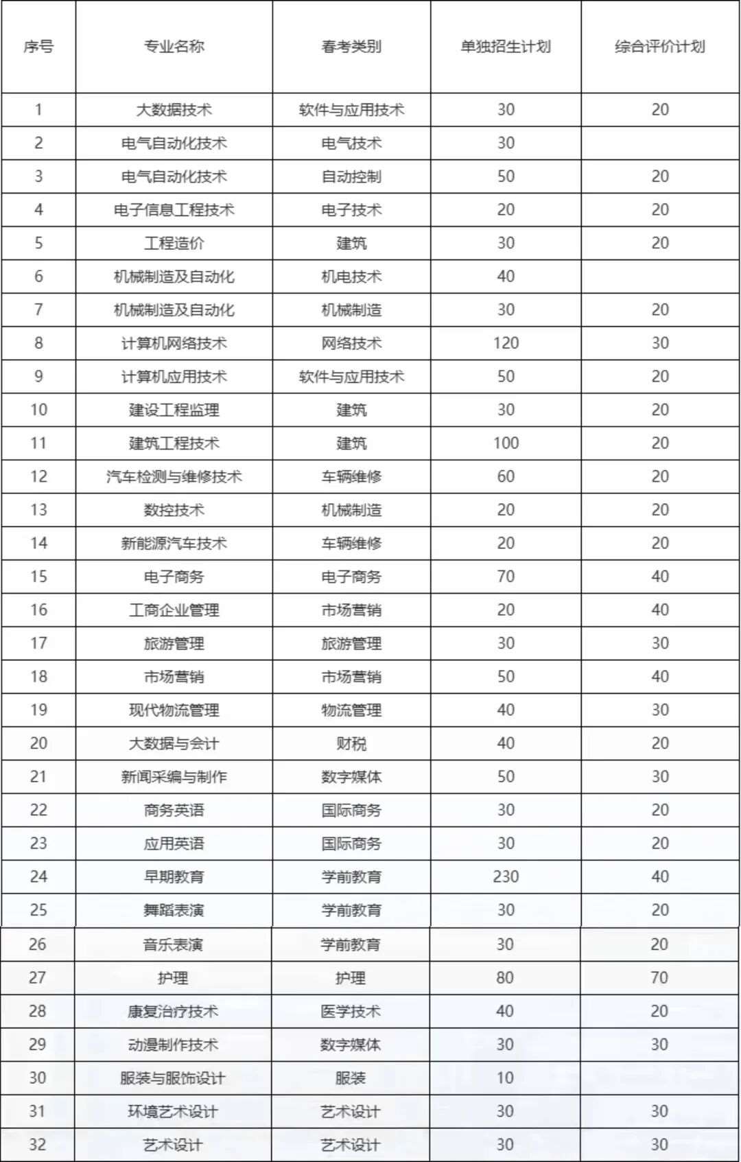 附:2025年英才学院单招综评招生计划