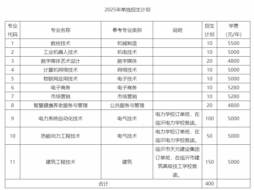 学校开设了13大类49个三年制高职专业,16个三二连读高职专业、17个与高水平中职学校联办初中后五年制高职专业、6个“3+2”对口贯通分段培养本科试点专业(与临沂大学、青岛理工大学、枣庄学院合作),形成了“中职-高职-本科”一体化人才培养体系。