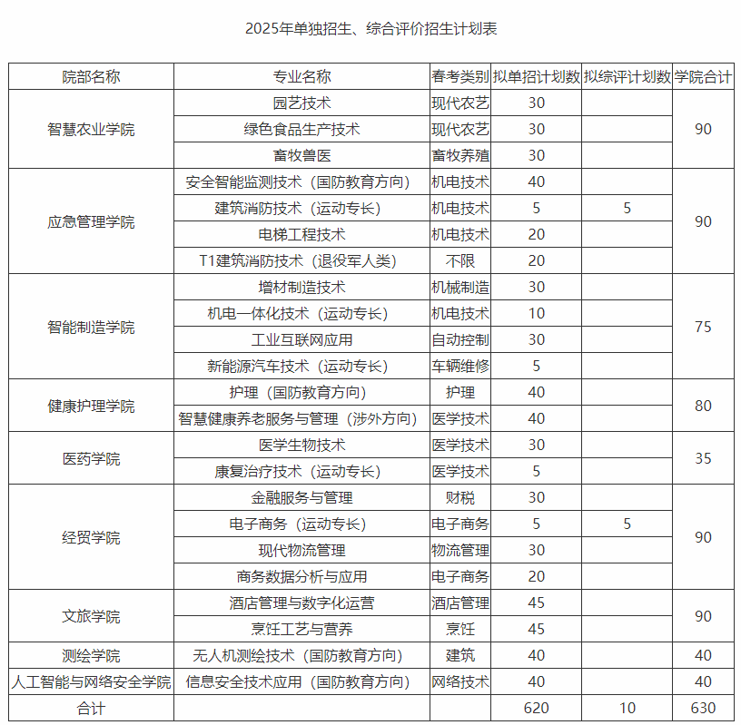 附:2025年单独招生与综合评价招生计划
